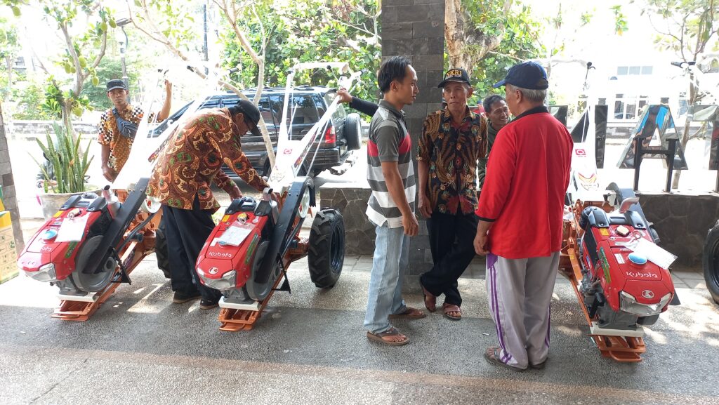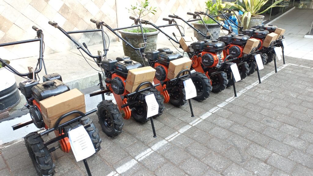 “Bantuan alat mesin pertanian tersebut berasal dari sumber anggaran DBHCHT, APBD Kabupaten Boyolali dan APBN Tahun 2023 yang telah dialokasikan untuk pengadaan 5 Unit Kendaraan Roda 3, 22 Unit Cultivator, 70 Unit Hand Sprayer Elektrik, 20 unit Traktor Roda 2 serta 3 Unit Pompa Air yang apabila dirupiahkan, alat alat mesin pertanian tersebut senilai Rp 1.182.501.800” jelasnya.